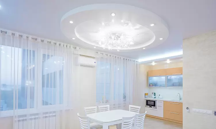 Посмотрит как установить потолок так, чтобы трубы, балки и электропроводка не были видны